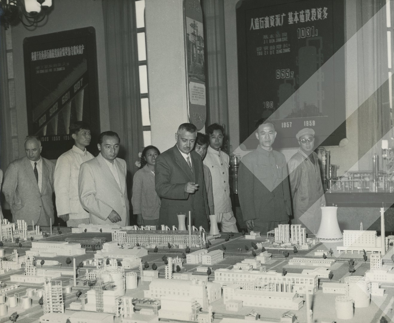 I panjohur, 1960 Kryetari i Presidiumit të Kuvendit Popullor, Haxhi Lleshi viziton ekspozitën industriale të provincës Liaoning print në letër, 15 x 18 cm.