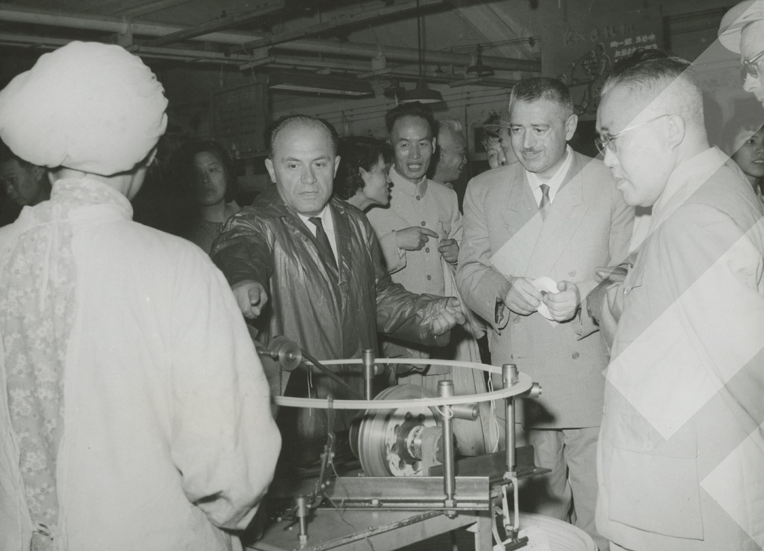 I panjohur, 1960 Kryetari i Presidiumit të Kuvendit Popullor, Haxhi Lleshi viziton uzinën e prodhimit të elektromotorëve në provincën Shanxi print në letër, 15 x 20 cm.