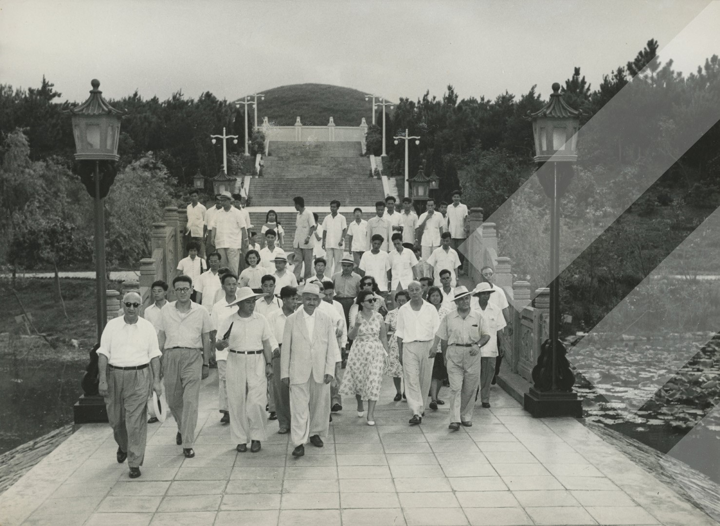 I panjohur, 1960 Delegacioni shqiptar viziton parkun kushtuar heronjve të rënë në kryengritjen e komunës së Guangzhou print në letër, 15 x 20 cm.