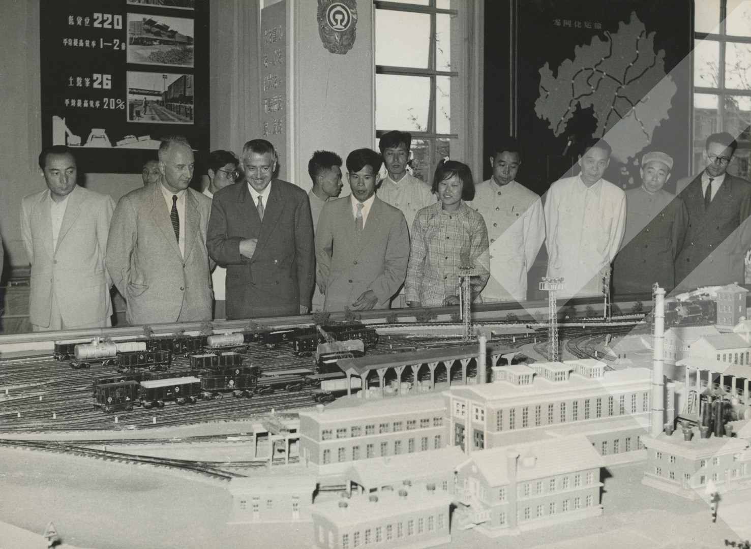 I panjohur, 1960 Kryetari i Presidiumit të Kuvendit Popullor, Haxhi Lleshi viziton ekspozitën industriale të provincës Liaoning print në letër, 15 x 20 cm.
