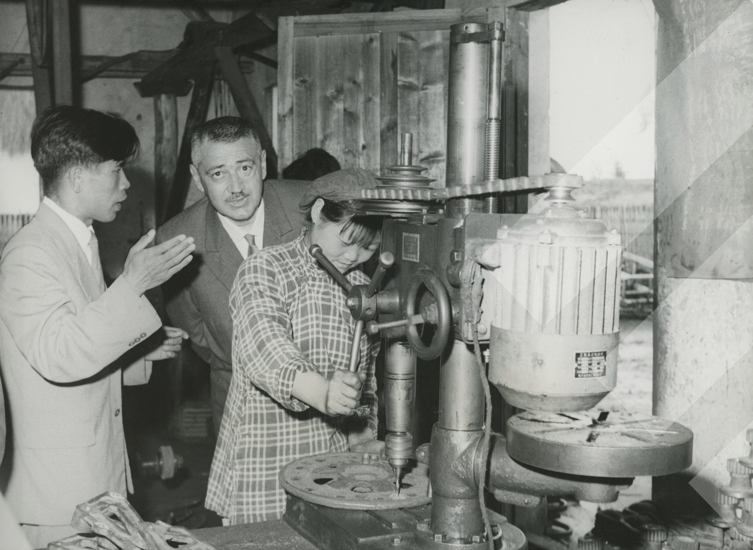 I panjohur, 1960 Vizita në uzinën e Komunës Popullore të Jianqiao, Guangdong print në letër, 12 x 20 cm.