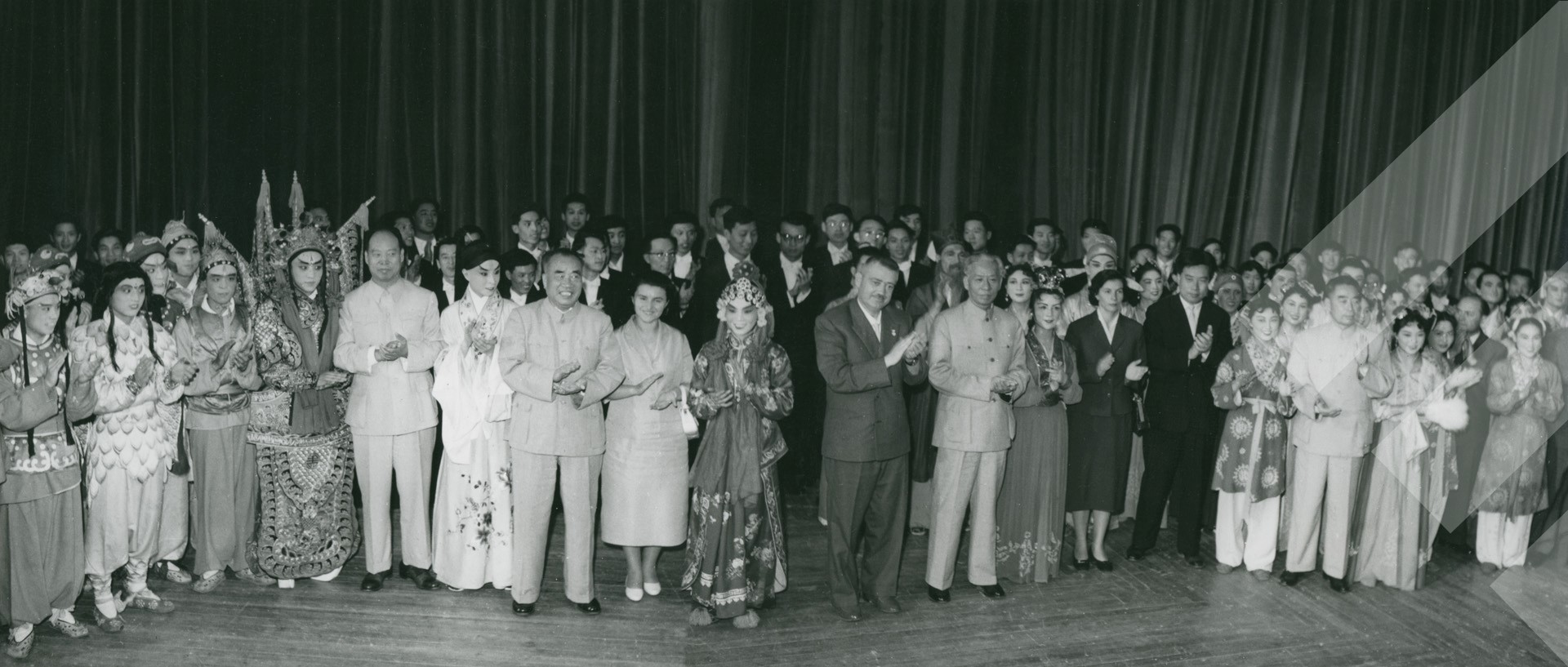 I panjohur, 1960 Presidenti Haxhi Lleshi në një foto kolektive me artistët pas shfaqjes print në letër, 14 x 32 cm.