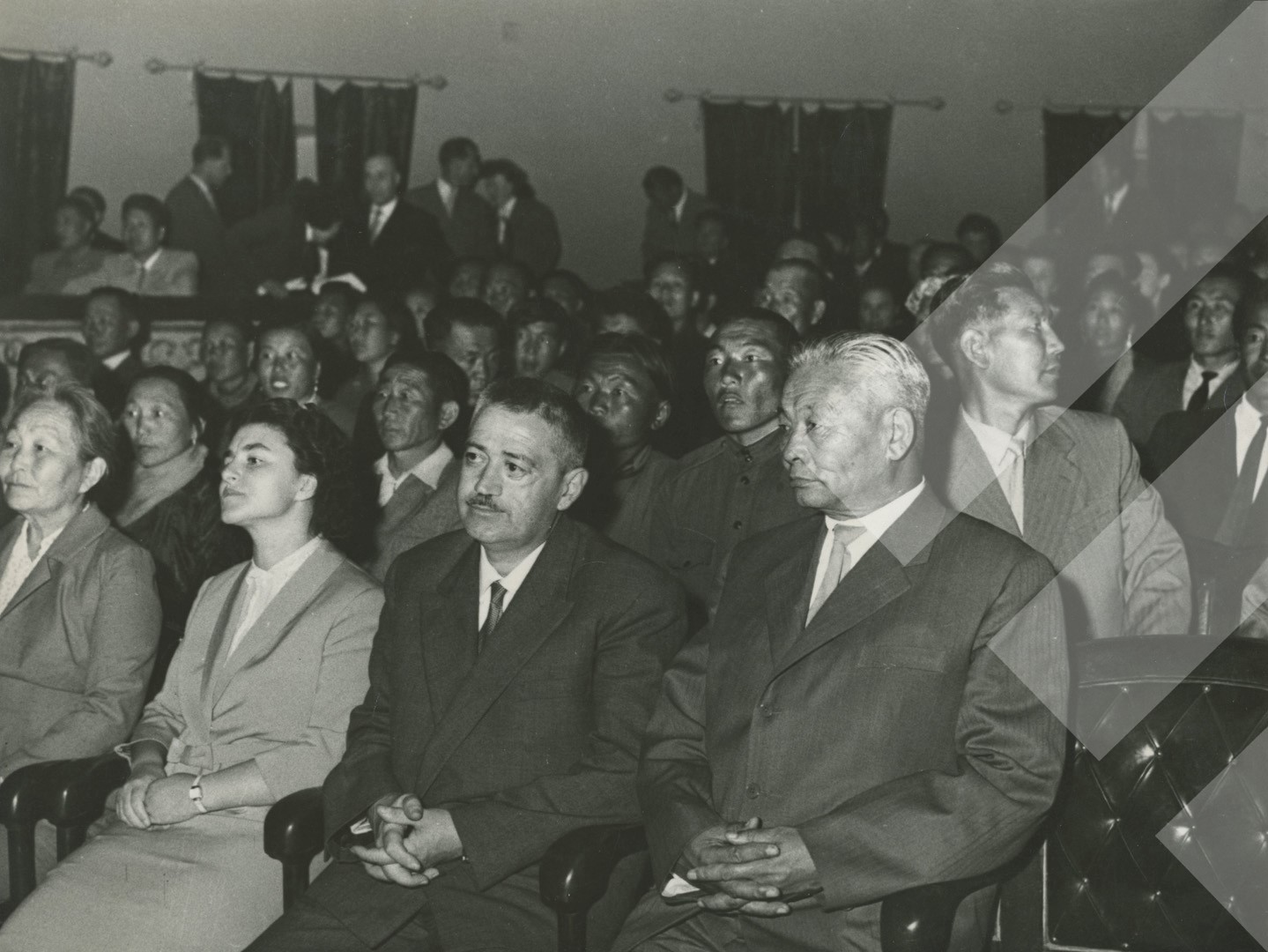 I panjohur, 1960 Kryetari i Presidiumit të Kuvendit Popullor, Haxhi Lleshi dhe Liri Belishova, anëtare e Byrosë Politike, gjatë vizitës në Republikën Socialiste të Mongolisë print në letër, 18 x 24 cm.