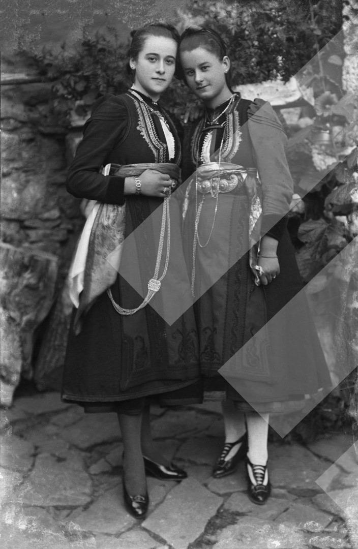 Ato na shfaqen duke pozuar së bashku [fig.21] ose në shoqërinë e të afërmve dhe mikeshave të tyre, veshur me kostumet tradicionale dardhare, veshje të cilat kishin filluar të zhdukeshin nga hapësira publike dhe rëndom popullonin rekuizitat e fotografëve për t’u përdorur prej tyre në rikrijimin e atyre modeleve fotografike ‘vintage’ thjesht për zbavitjen e klientëve. Teshat e qëmotshme po zëvendësoheshin me shpejtësi me veshjet e thjeshta të modës perëndimore, pa teprime ornamentike dhe qëndisje të ngarkuara, shprehje të një moderniteti në nxitim që kishte filluar të transfomonte mënyrën e jetesës së qytetit juglindor.